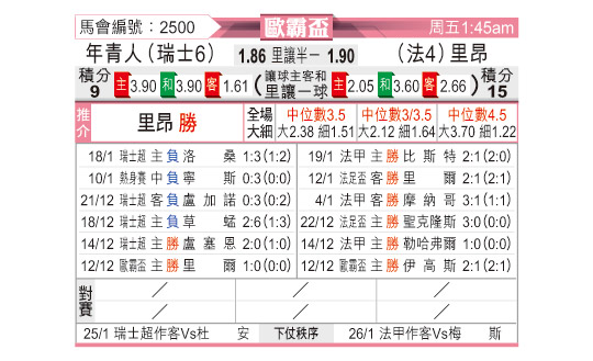 [欧联杯] 年青人vs里昂