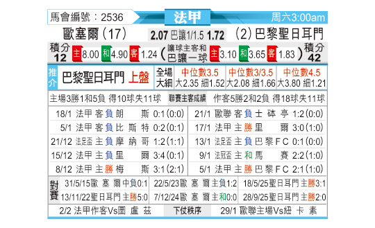 [法甲] 欧塞尔vs巴黎圣日耳曼