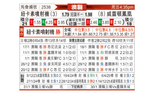 [澳超] 纽卡斯尔喷气机vs惠灵顿凤凰